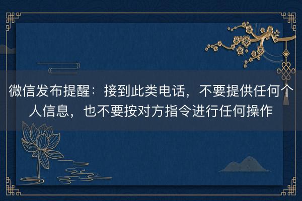 微信安全中心提醒用户,接到此类电话,请立即挂断,不要回答任何问题,不要提供任何个人信息,也不要按对方指令进行任何操作。