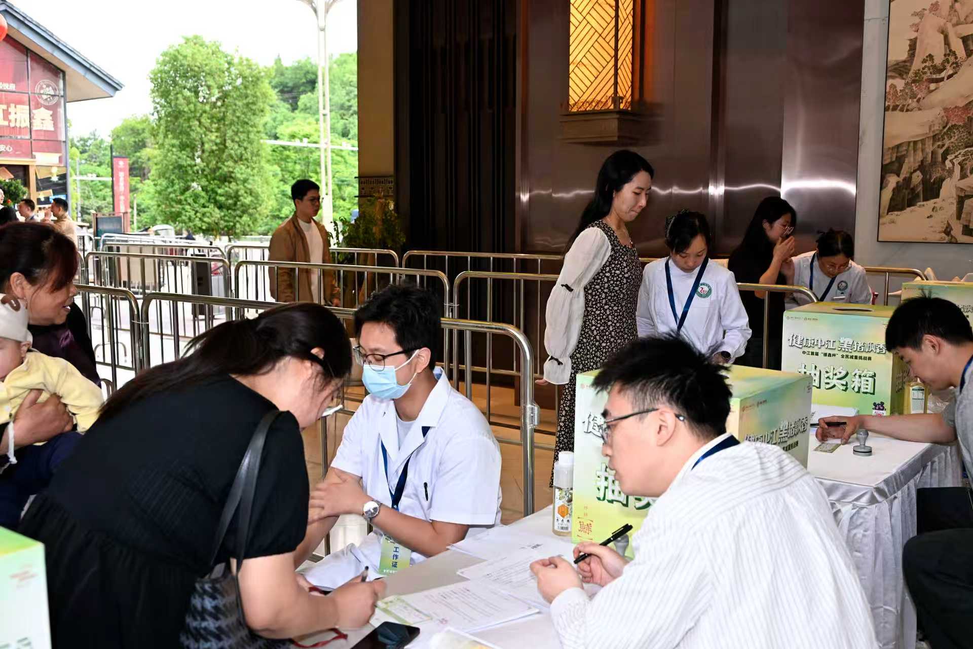 “您好,您的初始体重是78公斤,BMI指数28.3,属于超重范围,建议您每周减重0.5公斤至1公斤,饮食上注意减少高油高糖食物摄入……”医护人员一边为参赛人员记录初始体重和BMI数据,建立专属健康档案,一边耐心讲解科学减重知识,邀请参赛人员加入微信健康打卡群。