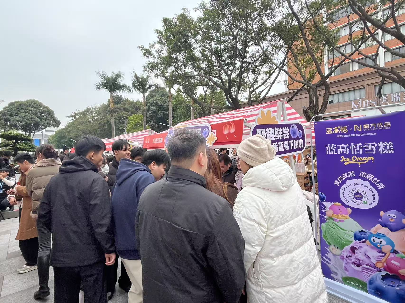 活动现场,蓝高恬品牌展位人气一路领跑,成为全场最火爆的展销摊位,展位前人头攒动、抢购火热,蓝莓鲜果及蓝莓雪糕火速走俏,好评如潮。