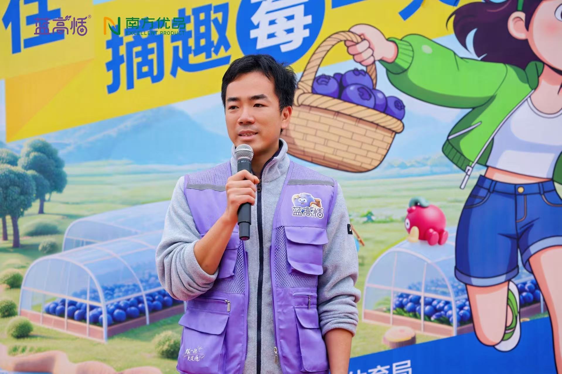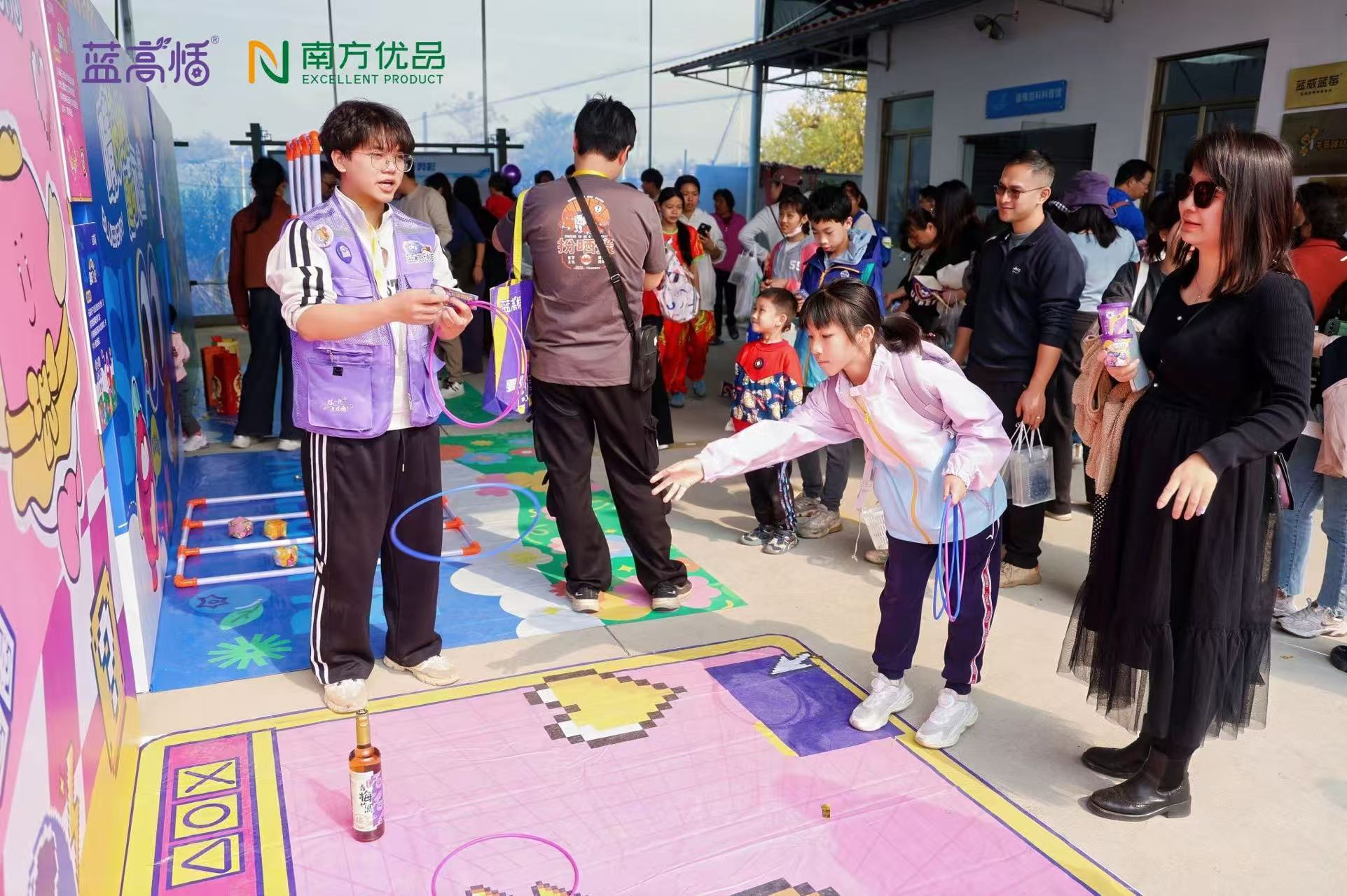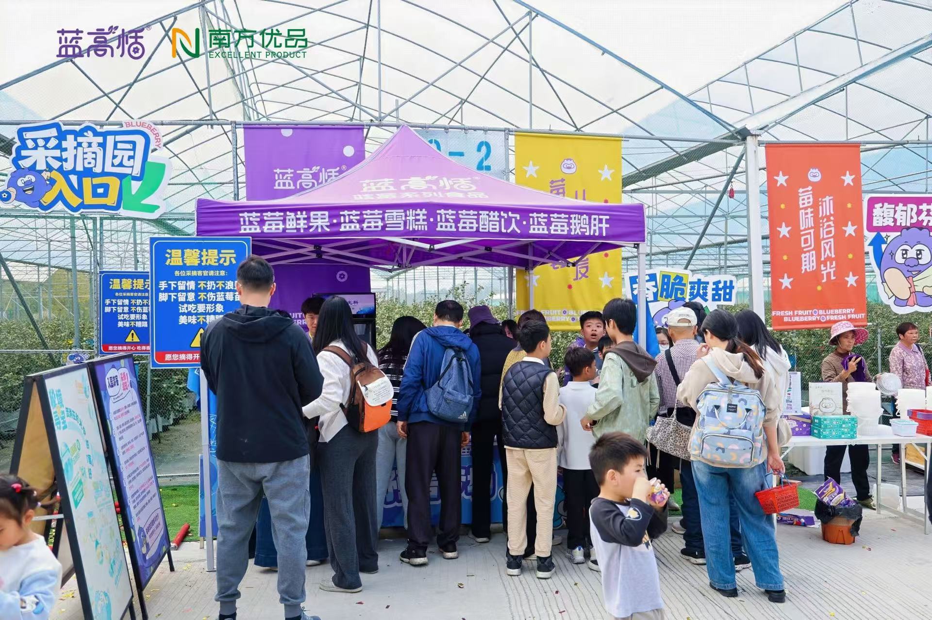 广东省云高健康科技有限公司总经理宗泽霖介绍,本次嘉年华精准对接乡村振兴“产业融合”需求,打造了“沉浸式农文旅体验动线”。该动线以“产业认知—体验互动—生态观光”为主线,串联蓝莓基地采摘区、科普教育区、趣味互动区及奇石河景区四大核心板块,形成“农业生产+文化体验+生态休闲”的全链条体验体系。从亲手采摘感受农耕乐趣,到科普馆系统了解蓝莓产业发展历程与种植技术,再到趣味活动释放活力,最终在自然景观中舒缓身心,全链条设计不仅大幅提升游客参与感,更实现了农业价值、文化价值与旅游价值的多元统一,让农旅融合的“莓好体验”触手可及。