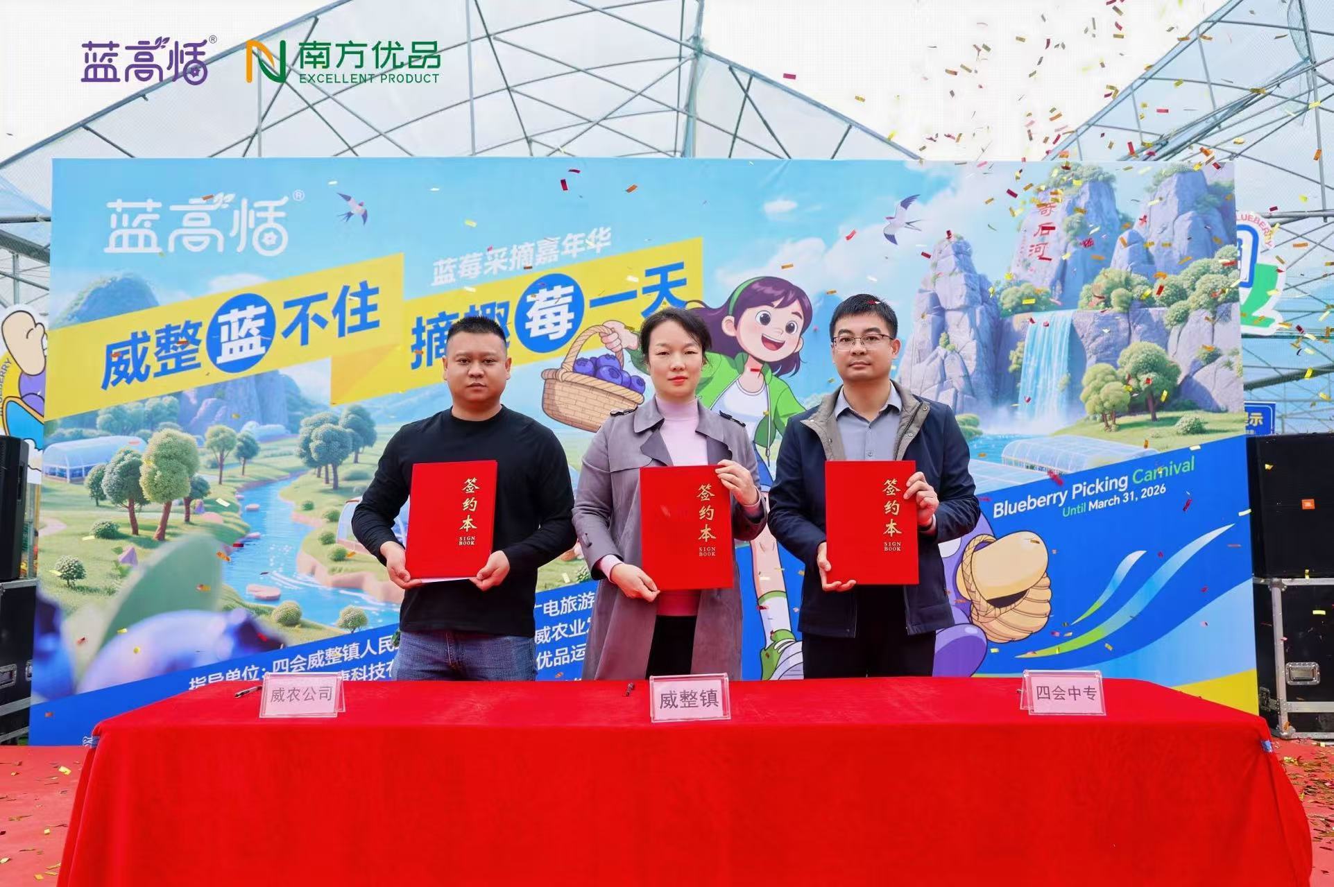 当天,威整镇人民政府、四会中等专业学校、四会市威农农业发展有限公司共同签署了合作协议,三方将深化政企校协同合作,为威整镇蓝莓产业及农文旅融合发展注入更强有力的支撑,助力乡村振兴提质增效。