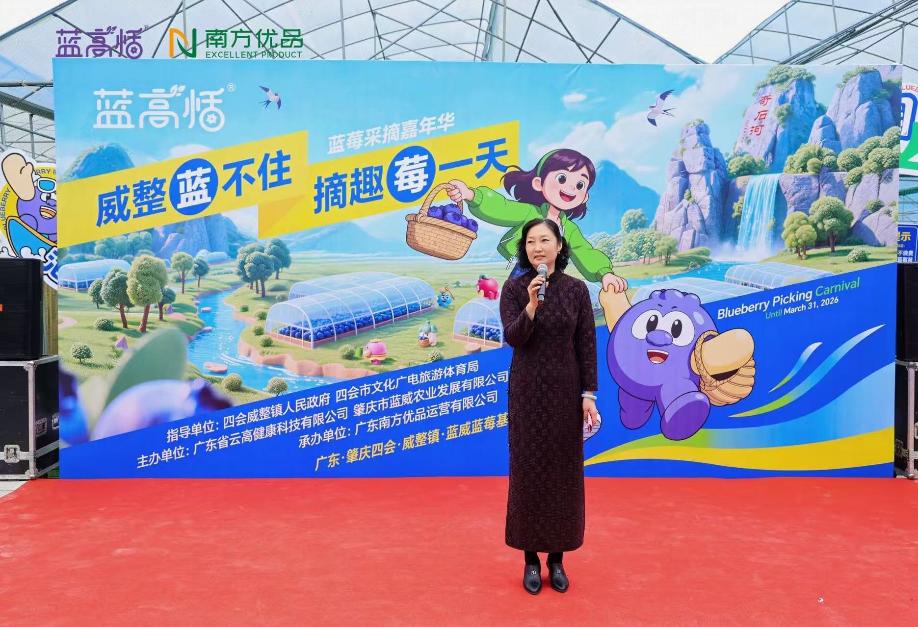活动启动仪式上,四会市人大常委会党组副书记、副主任严涛在致辞中肯定了本次嘉年华活动的意义。她指出,威整镇立足生态禀赋与农业基础,将优质蓝莓产业作为农文旅融合发展的核心支点,绝非简单的“农业+旅游”叠加,而是通过蓝莓这一核心IP,构建“产业引领、体验赋能、业态联动”的多元发展生态,串联起科普教育、民俗体验、生态观光等业态,既满足了都市人群对田园生活的向往,更形成了“农业筑基、文旅引流、商业增收”的良性循环体系,为镇域内农业种植、餐饮住宿、零售商贸、景区运营等相关产业注入持续的消费活力,推动乡村产业实现集群化发展。